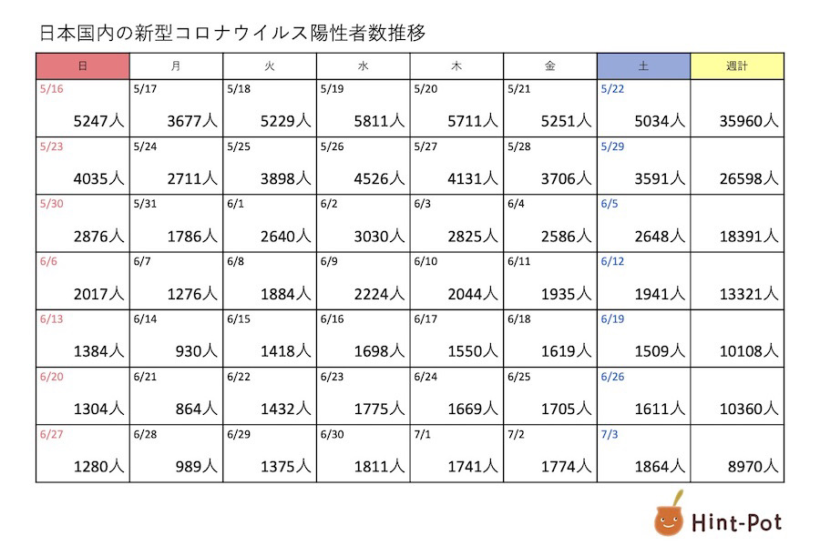 7月5(月)感染者数 引越 保管 一般貨物 新型コロナ まん延防止等重点措置